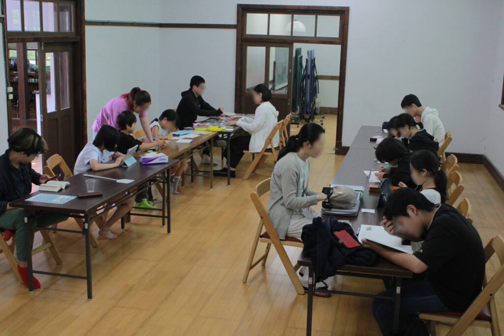 勉強会:宿題や折り紙をして、終わったあとはおかしを仲良く食べ、30分ほどグラウンドで遊びました。